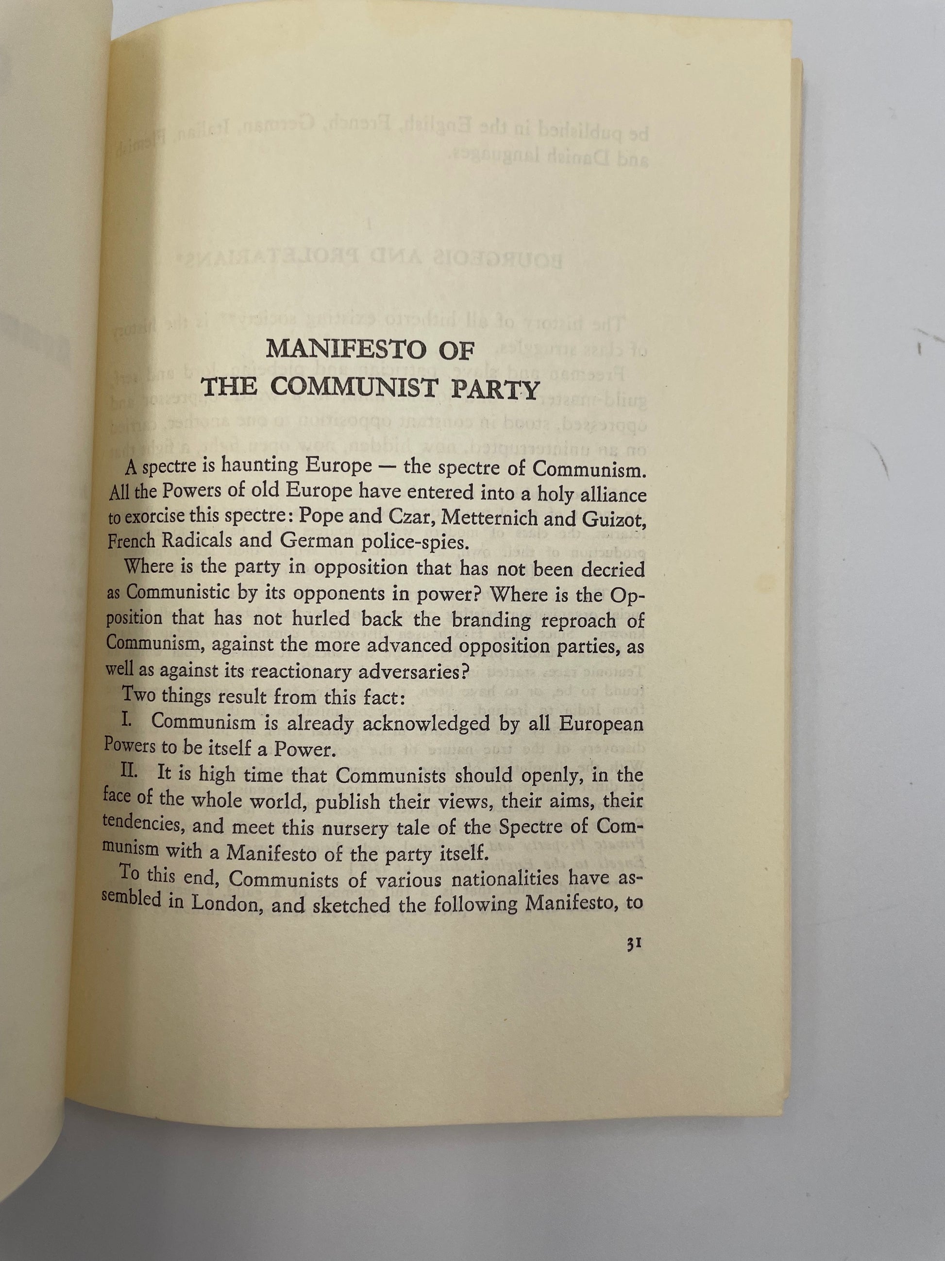 This English edition of Manifesto of the Communist Party (published in 1975, second printing in China) is a reproduction of the 1888 translation by Samuel Moore, made from the original German text of 1848 and edited by Frederick Engels.